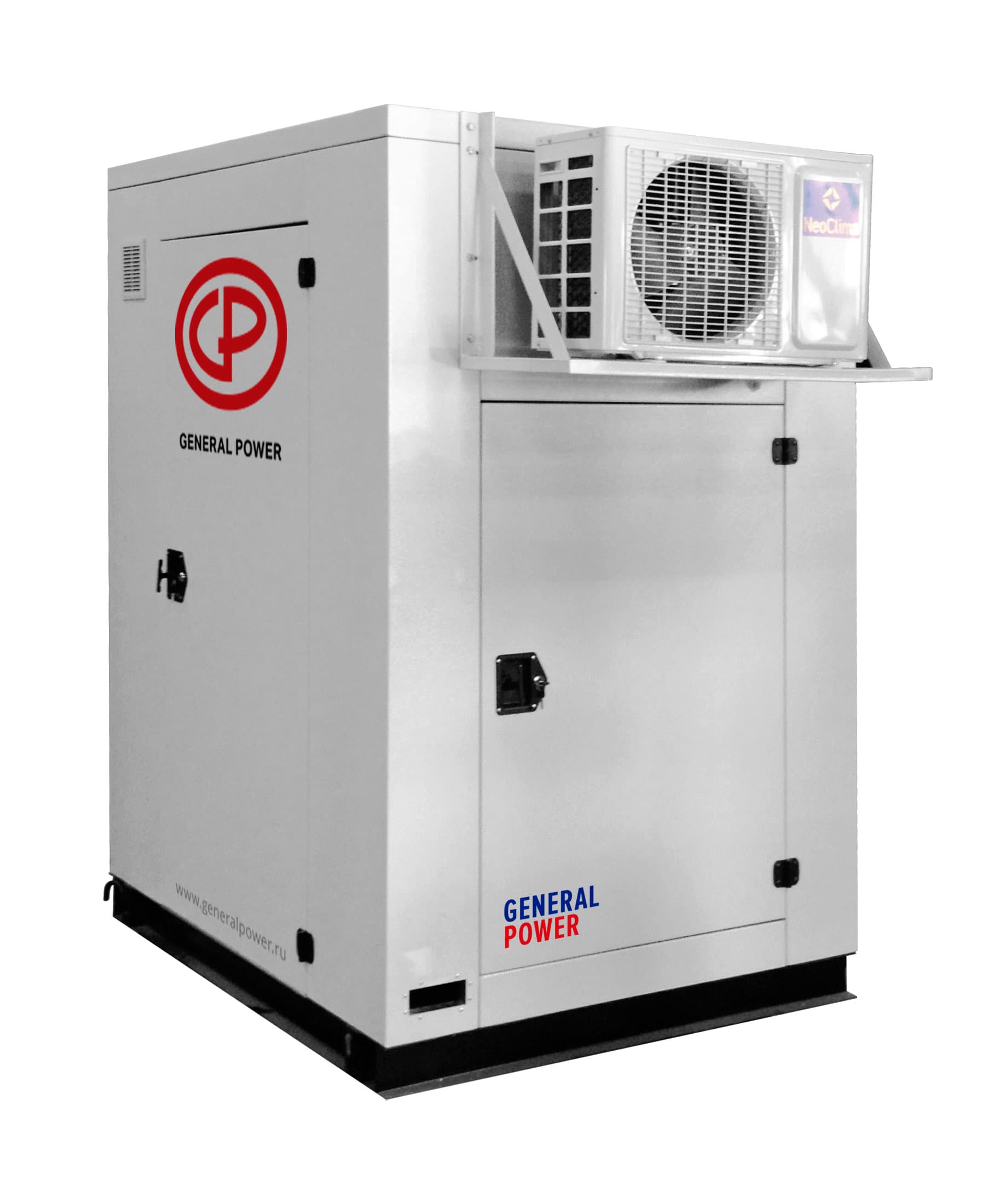 Контейнер для генератора (шумозащитный кожух) имеет следующую базовую комплектацию: