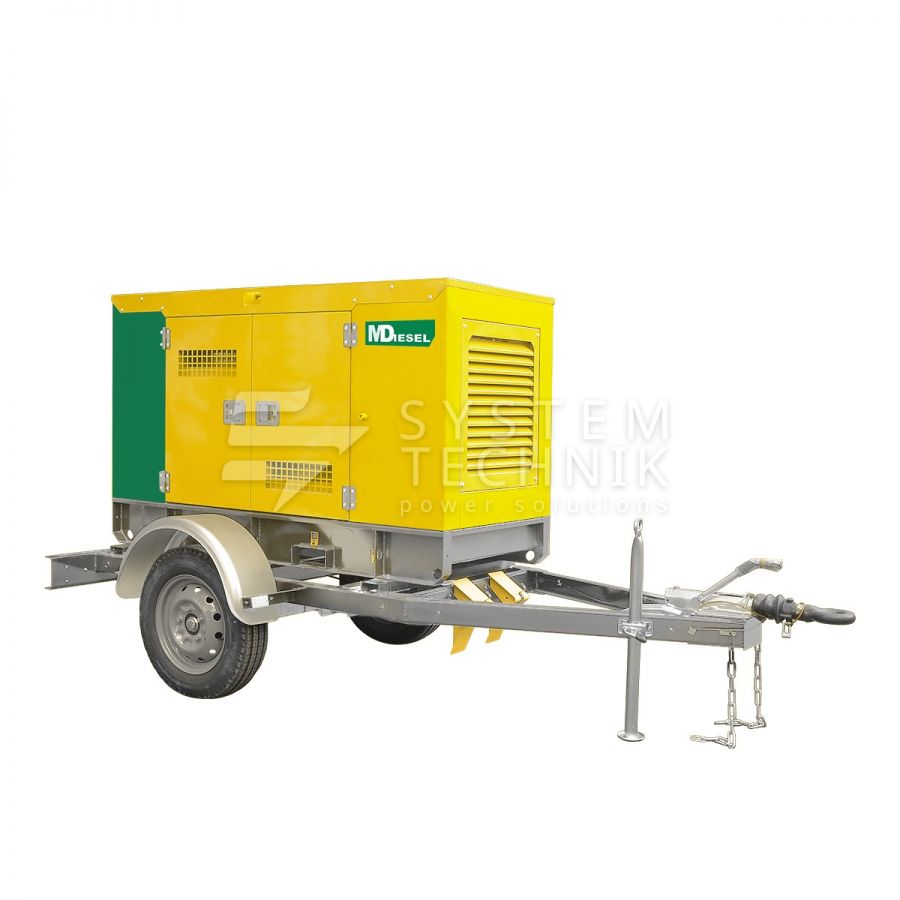 Дизельный генератор MitsuDiesel МД ЭД-60-Т400-1РКМ29 в шумозащитном кожухе на шасси на прицепе в Павловском Посаде