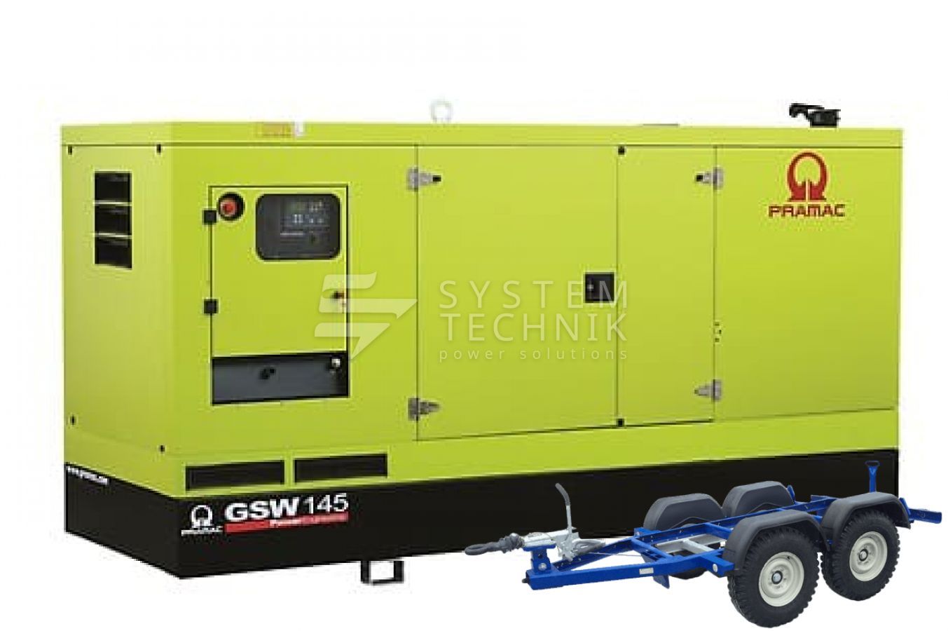 - Дизельный генератор Pramac GSW 150 P 440V В кожухе на прицепе