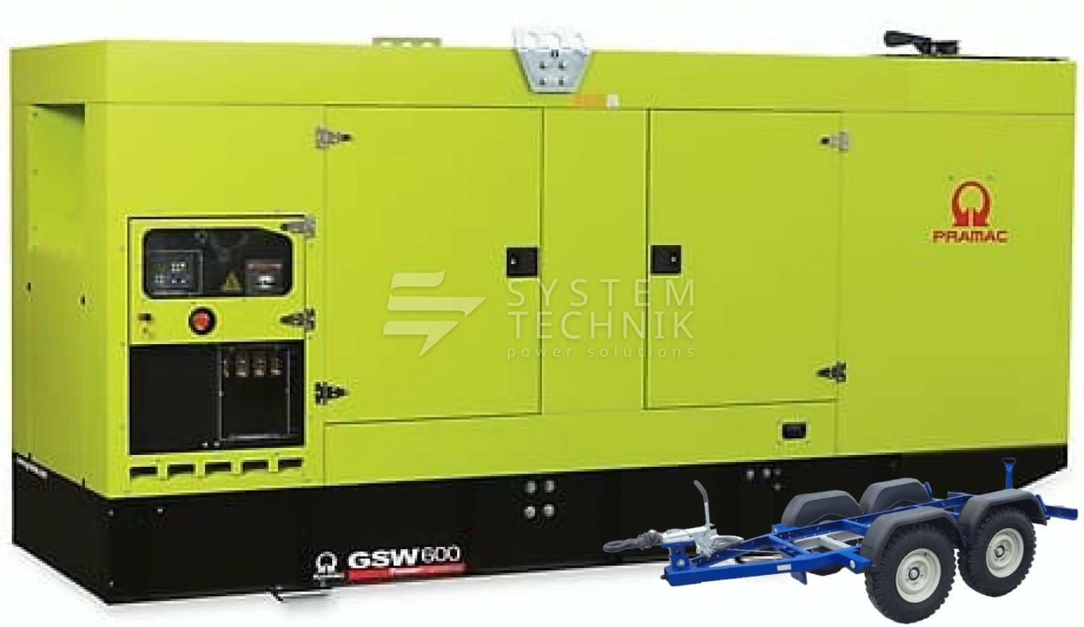 - Дизельный генератор Pramac GSW 600 V 380V В кожухе на прицепе