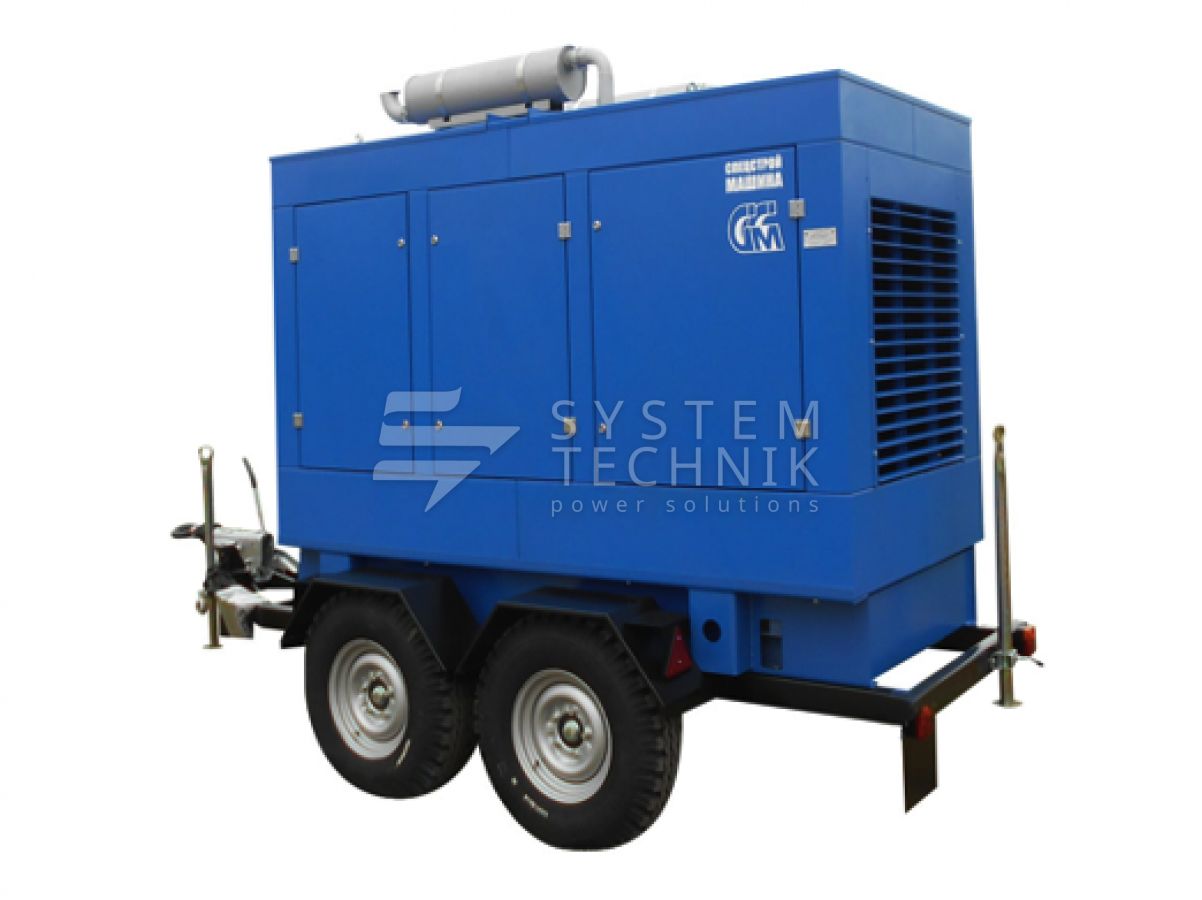 - ССМ ЭД-150-Т400-1РПМ2 (Marelli) в погодозащитном кожухе на шасси на прицепе