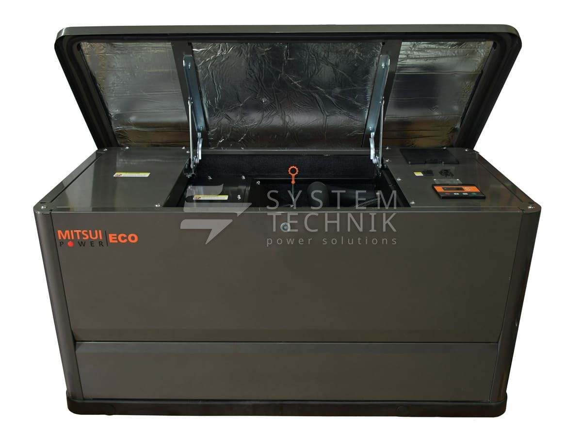 Трехфазная газовая электростанция в шумозащитном кожухе Mitsui Power Eco GM 10000 изготовлена на базе двигателя Mitsui С720 с воздушным охлаждением. Генератор предназначен для организации автономного электроснабжения домов, небольших коммерческих, социальных и бытовых объектов.